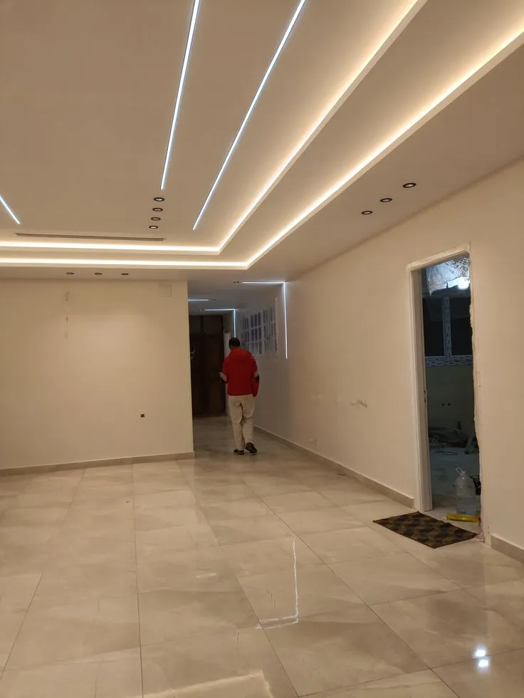 تشطيب داخلي: تركيب الأرضيات (باركيه، سيراميك، رخام)، الأسقف المعلقة، الجبس بورد، الطلاء، الإنارة، الأبواب، والنوافذ.