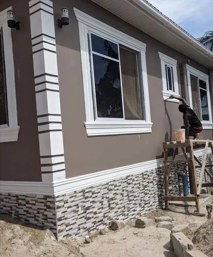 تشطيب خارجي: تنفيذ الواجهات الحجرية والرخامية، دهانات خارجية مقاومة للعوامل الجوية، عزل حراري ومائي، تنسيق الحدائق، ومداخل فخمة.