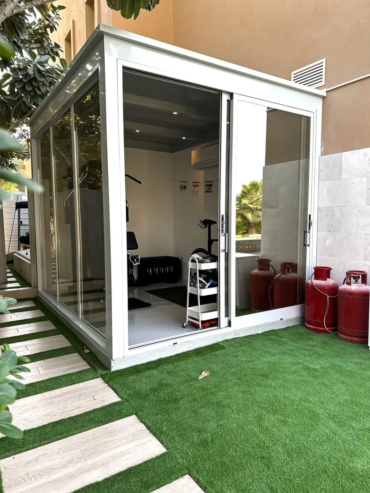 بناء ملاحق مع واجهة زجاجية في الرياض تصميم مجالس خارجية تصميم مجالس خارجية وبنا...