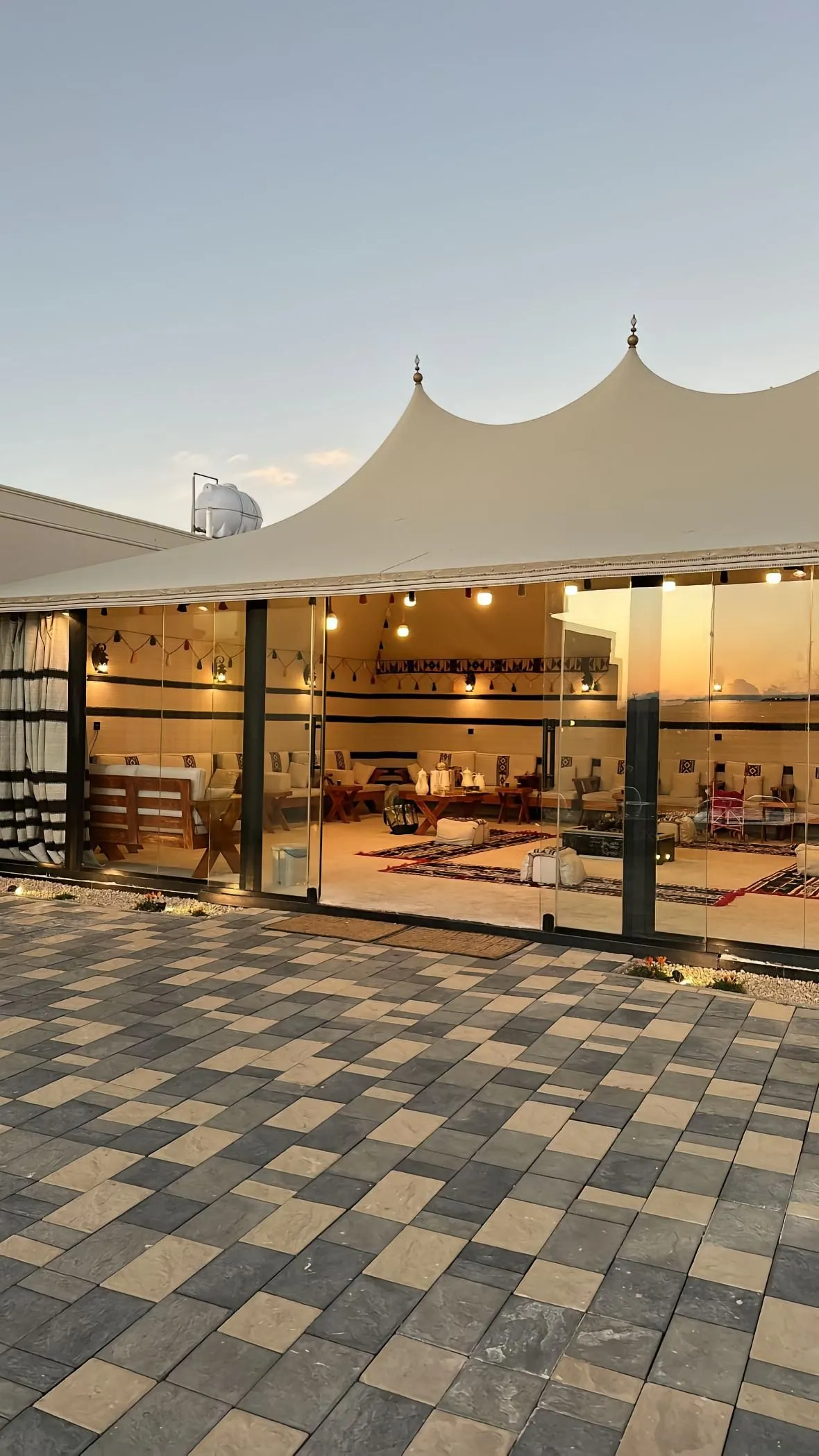 بيت شعر زجاج على السطح أو الفناء الخارجي.
