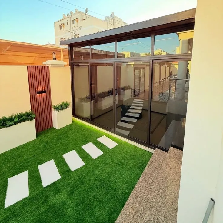 الملاحق الزجاجية تضيف لمسة معمارية حديثة تعزز من قيمة العقار، وتمنح المنزل مظهرًا راقيًا يناسب الذوق العصري في الرياض.